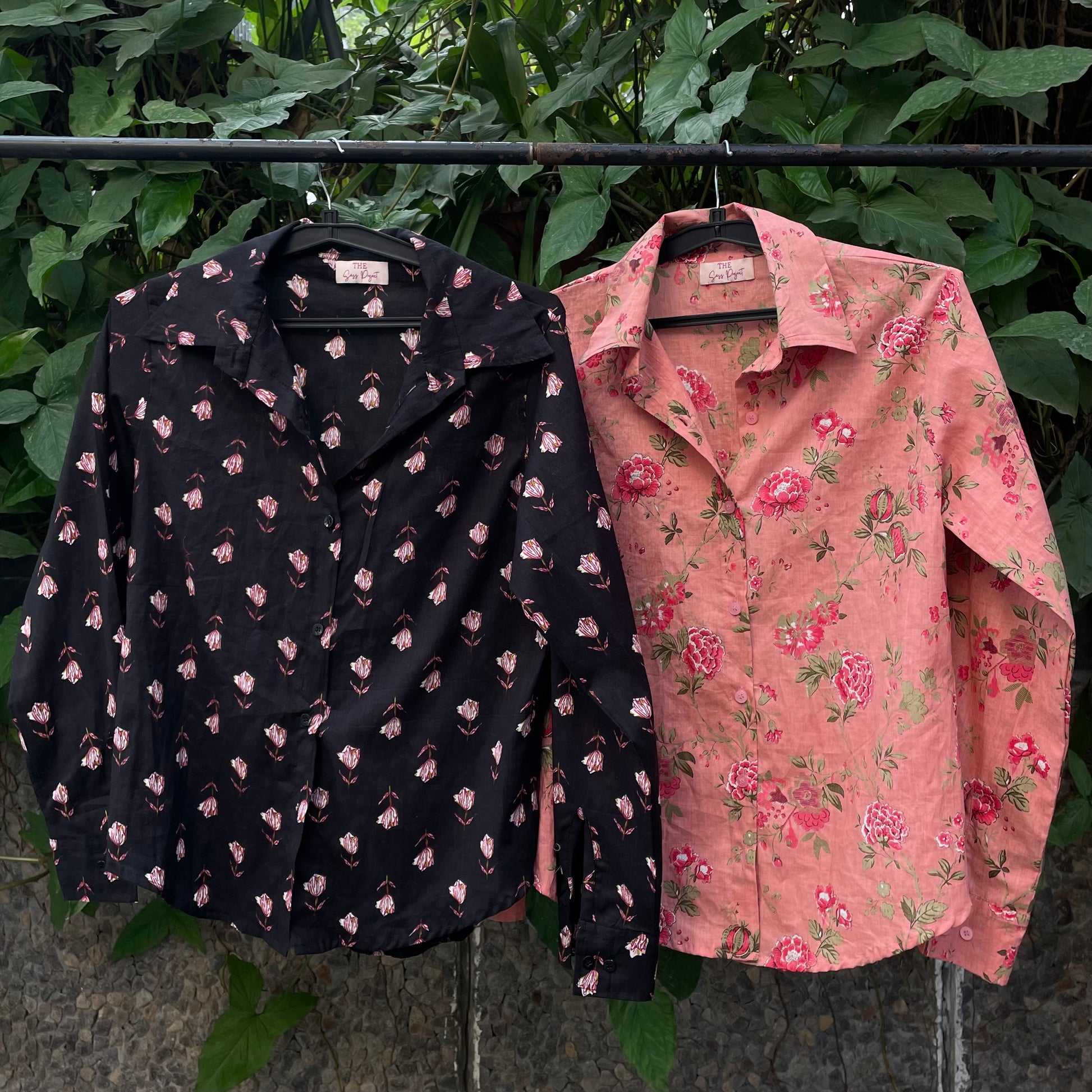 - Shirts have a slightly oversized fit. They have buttons, a collar & cuffs at the end of the sleeves. They are approximately 25-27 inches in length depending on the size.