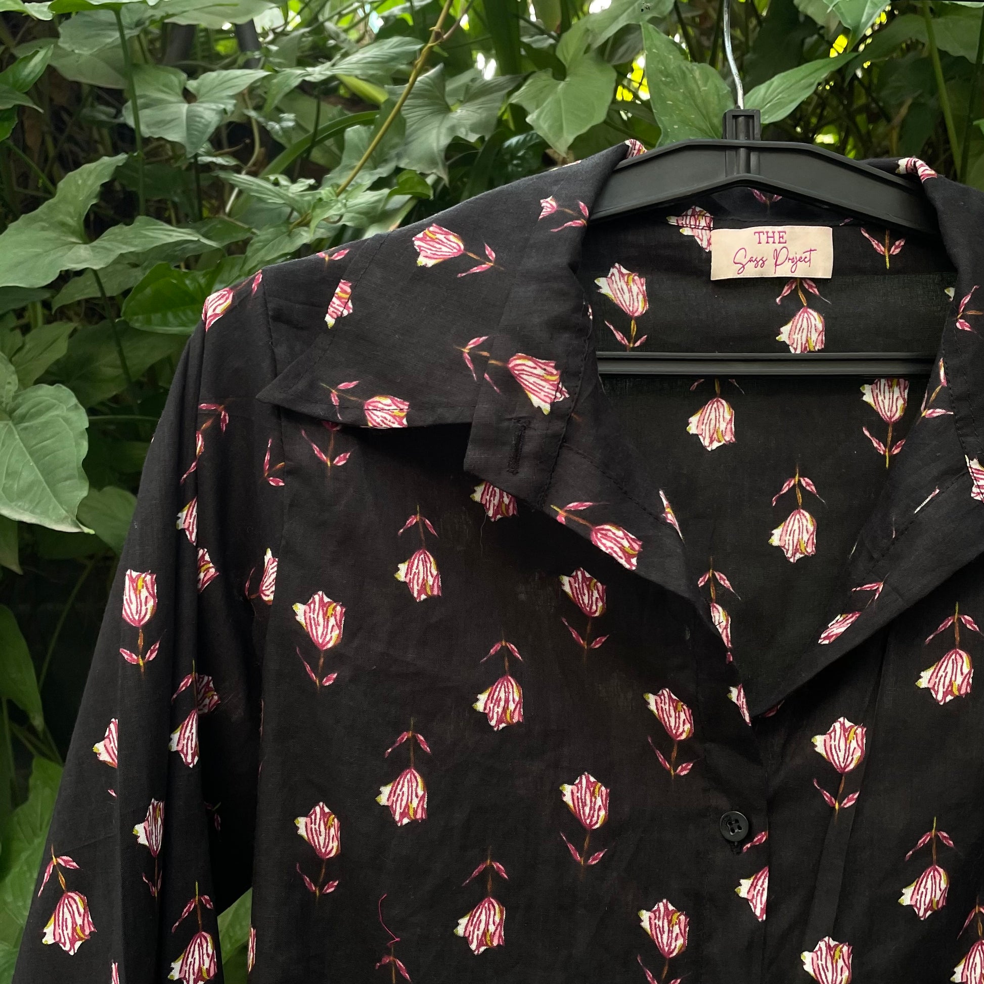 - Shirts have a slightly oversized fit. They have buttons, a collar & cuffs at the end of the sleeves. They are approximately 25-27 inches in length depending on the size.