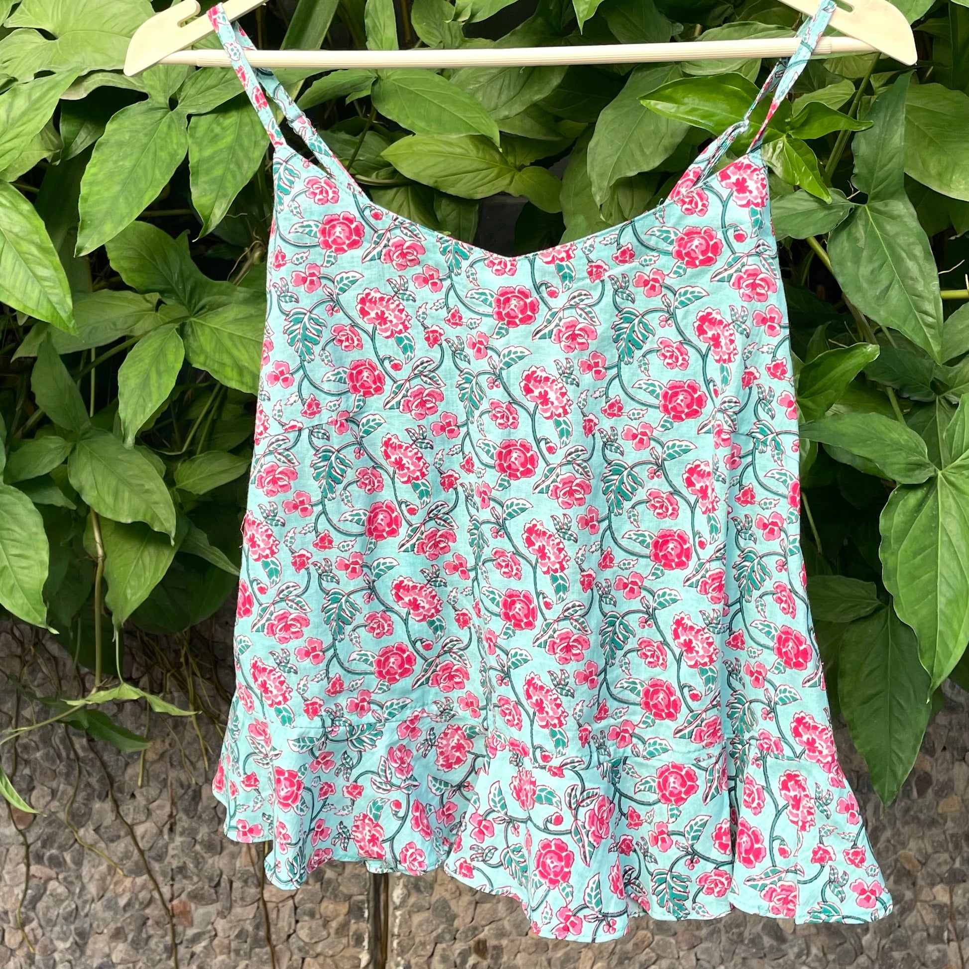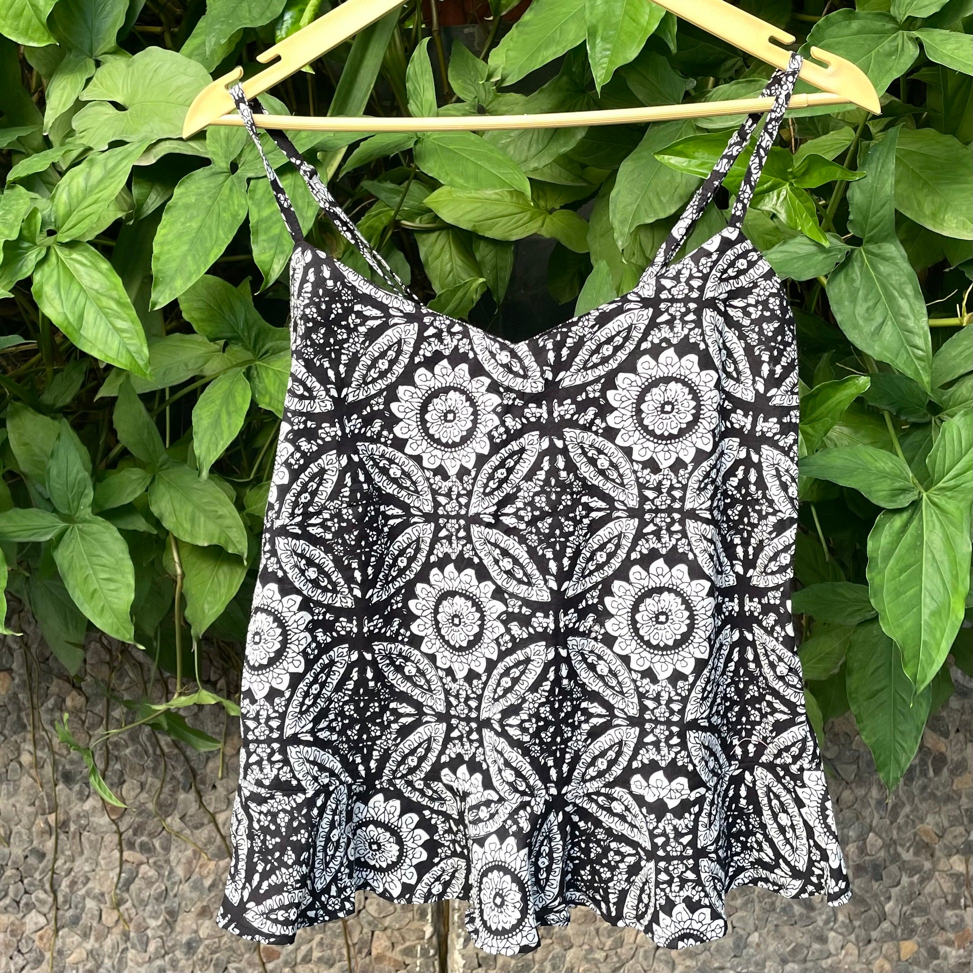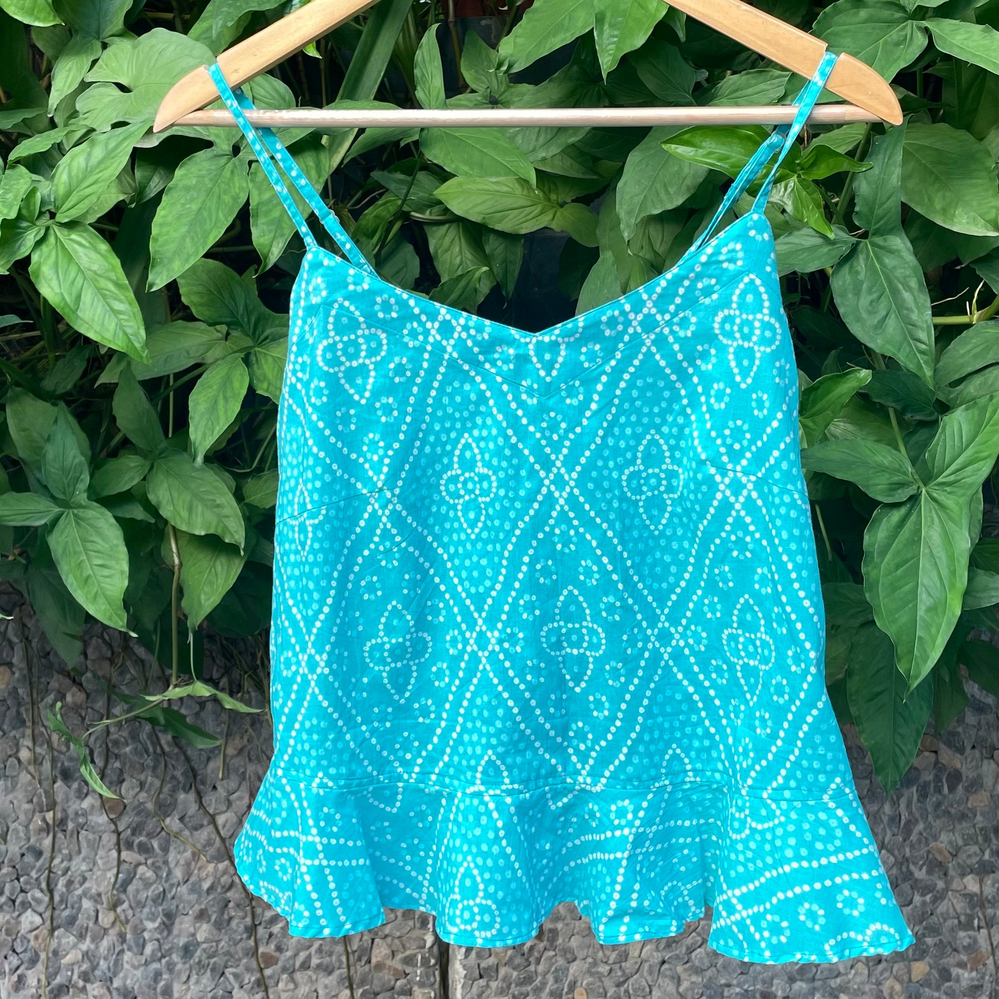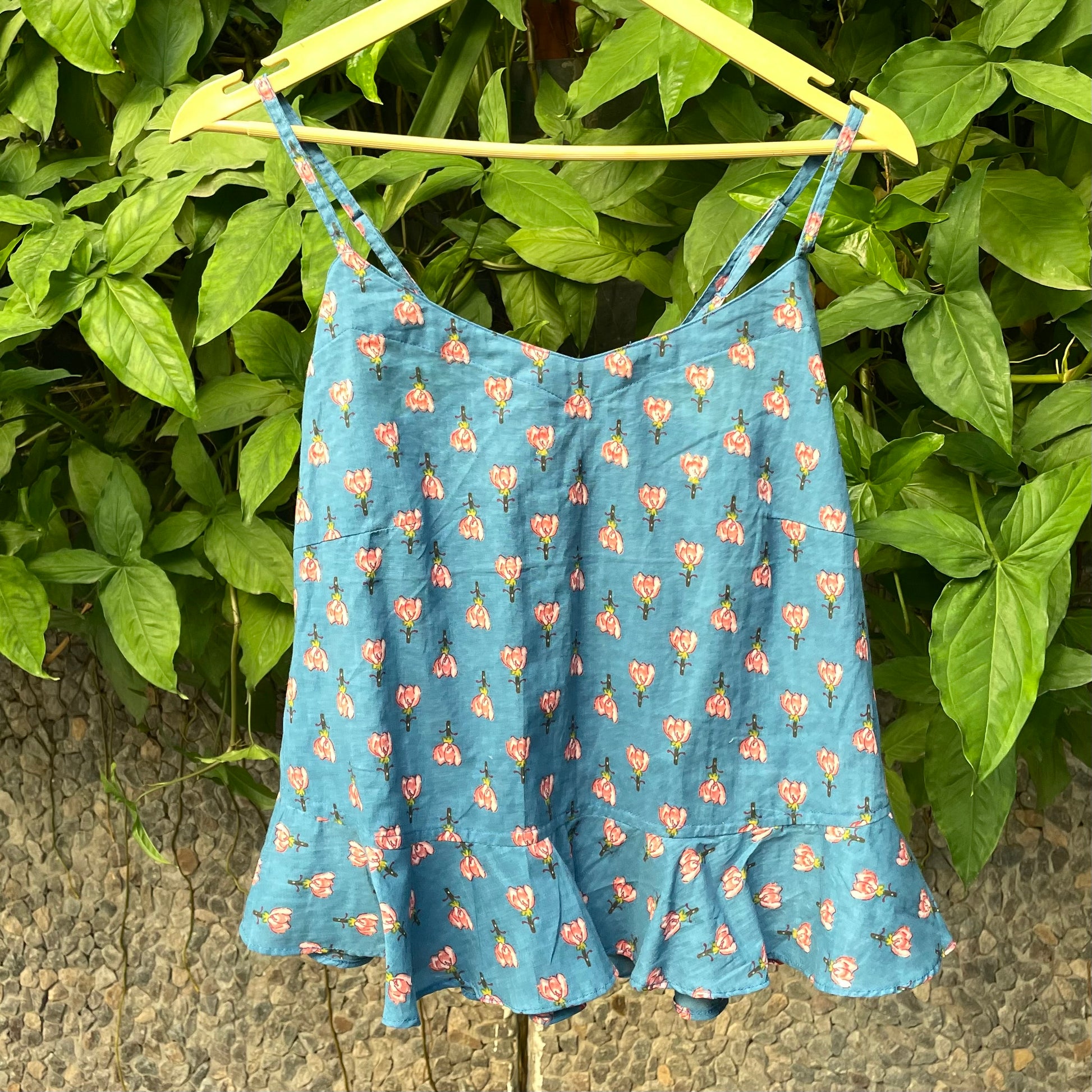 - The peplum style tops are elasticated at the back, making them stretchy in nature. Their straps are adjustable