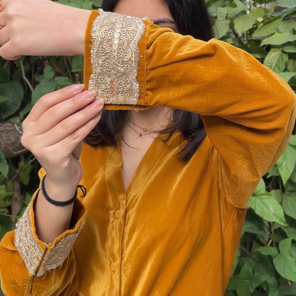 While choosing your size, please choose your size as per your body measurements. The final pieces will be made accordingly.