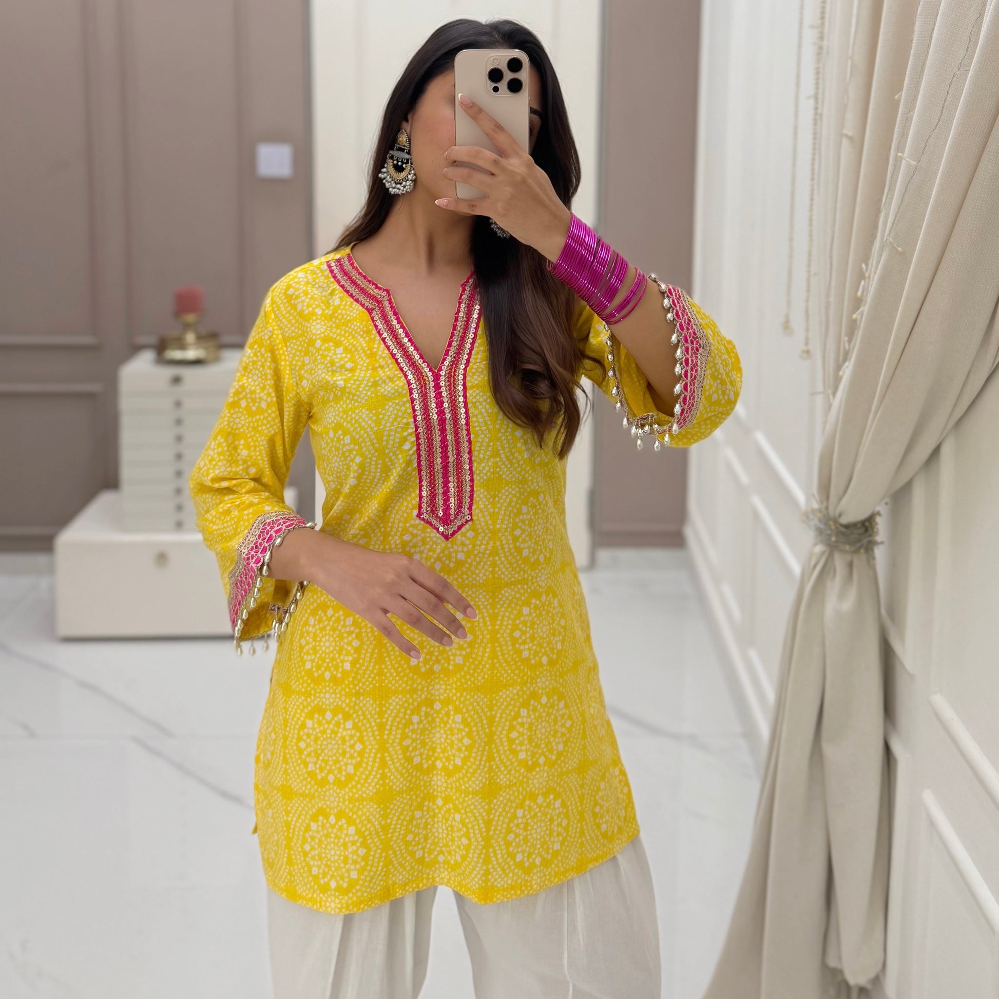 Yellow bandhani set